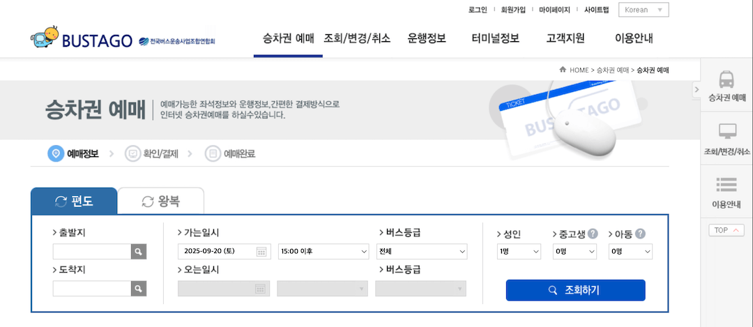 - 모바일 승차권 제시 또는 터미널 발권기/창구에서 발권 가능